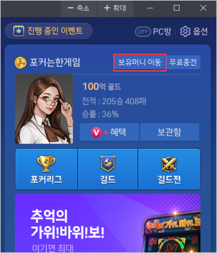 : PC 클라이언트에서 서비스 이용 시, 게임에 접속 중인 계정으로는 머니 이동이 불가합니다.