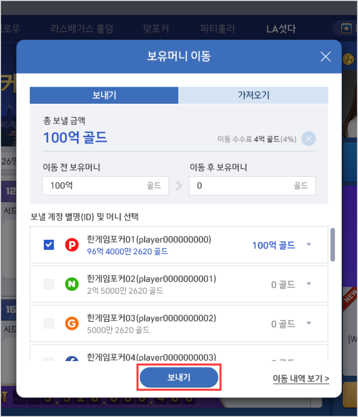 포커 머니를 나의 다른 계정으로 옮기고 싶다면?